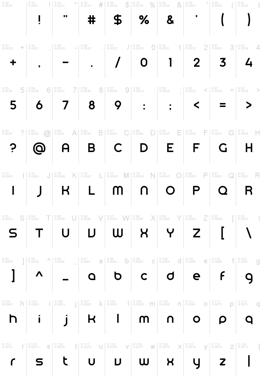 Prosím, použijte roletové menu ke shlédnutí různých tabulek znaků obsažených v tomto písmu.